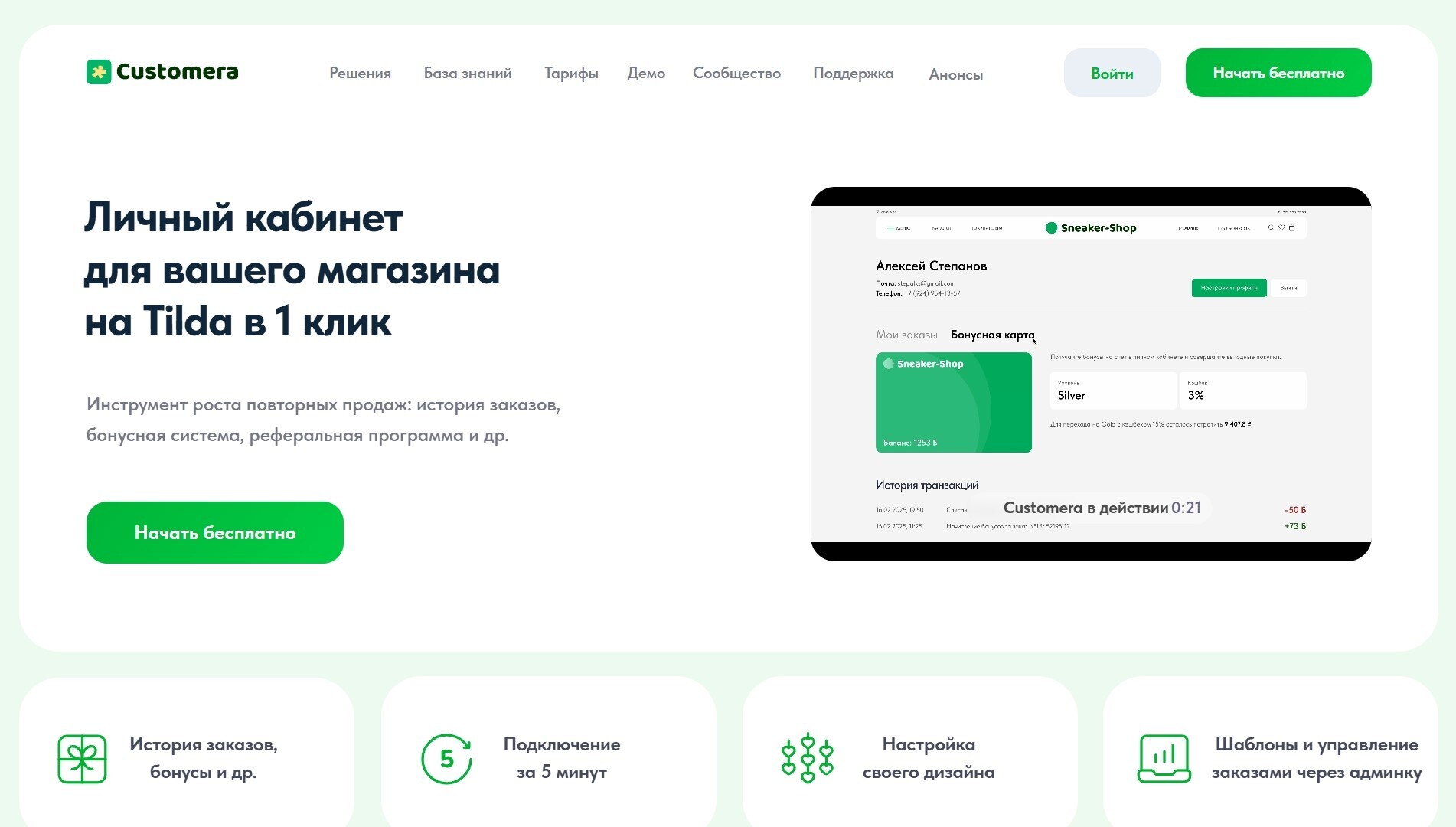 Customera — сервис для установки продвинутого личного кабинета для магазина на Тильде. Данный инструмент гораздо более функциональнее и мощнее, чем стандартный ЛК Тильды.